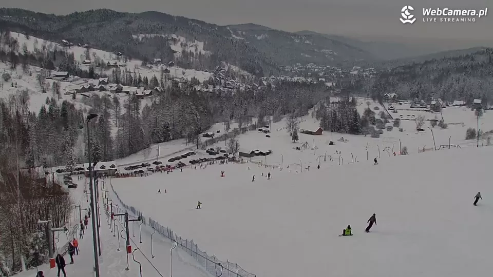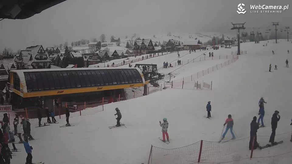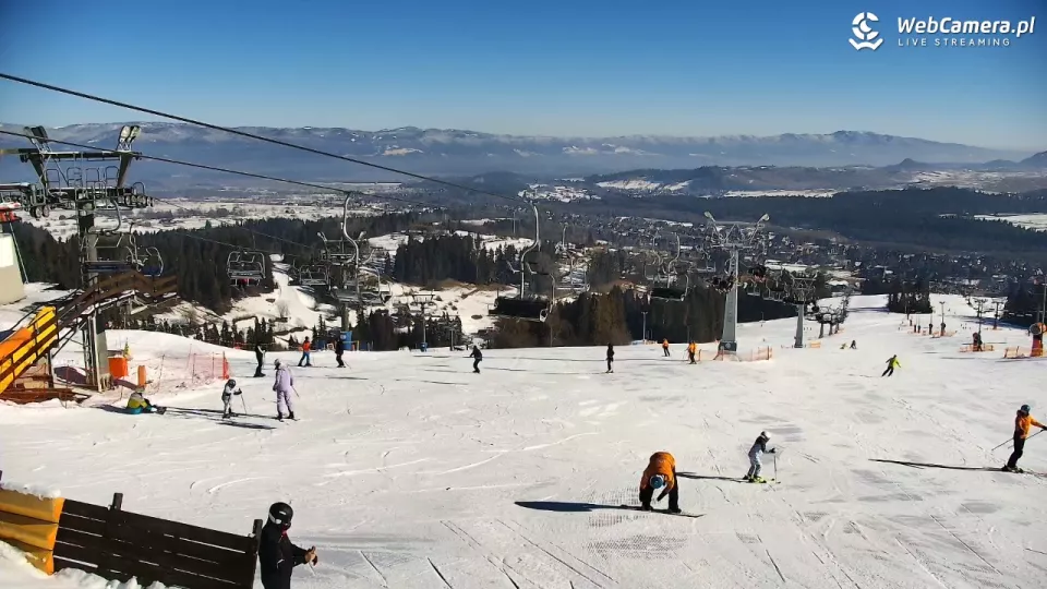 Kotelnica Białczańska - widok na aktywnie spędzających czas narciarzy i snowboardzistów