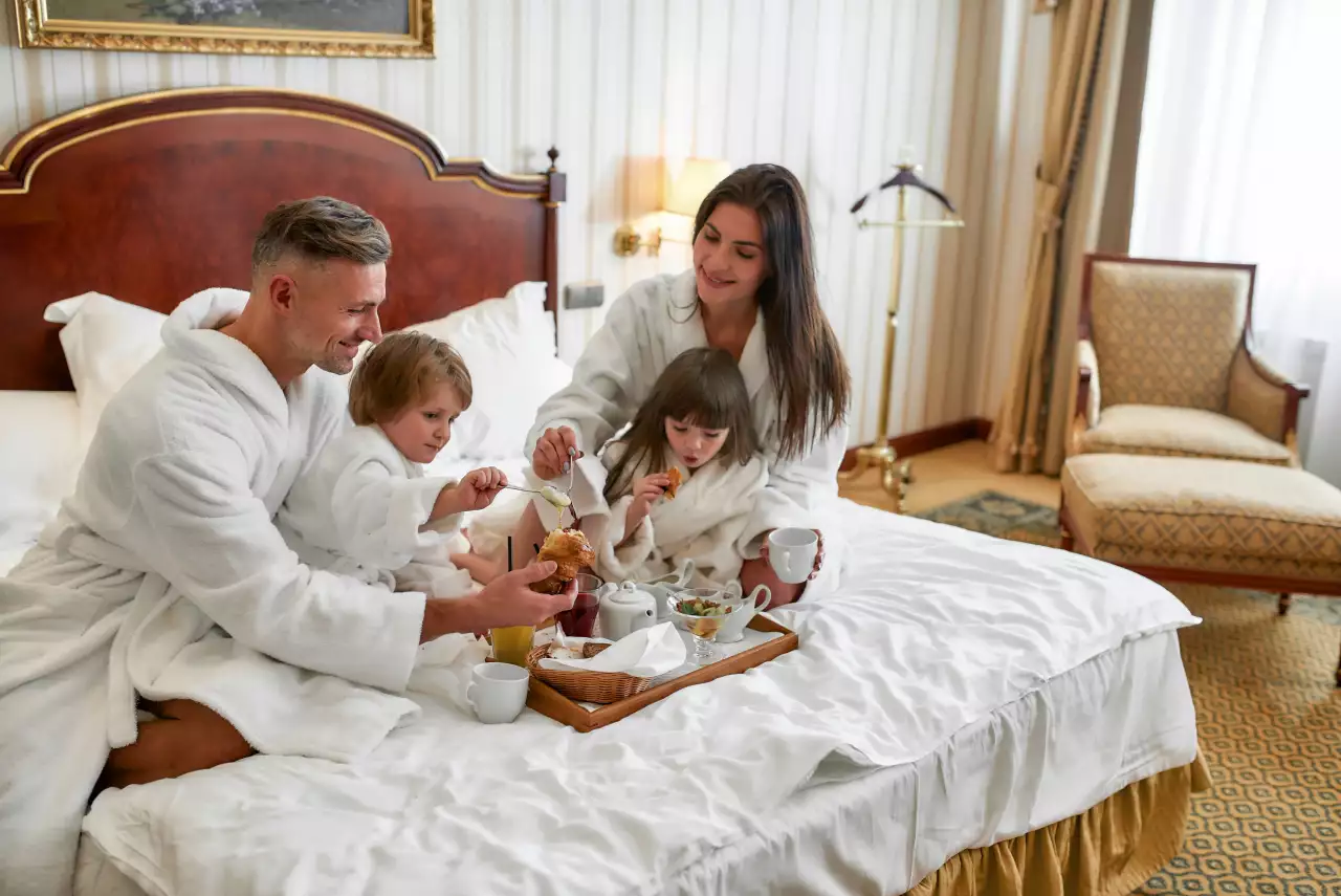 zdjęcie: shutterstock.com/ rodzina w pokoju hotelowym