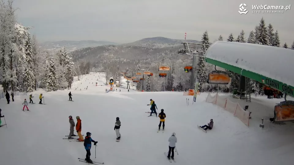 Czarny Groń w Rzykach koło Andrychowa to całoroczny ośrodek położony w malowniczym Beskidzie Małym. Zimą przyciąga narciarzy i snowboardzistów dobrze przygotowanymi trasami o różnym stopniu trudności. Na górną stację kolei krzesełkowej prowadzi nowoczesny wyciąg, który umożliwia komfortowy wjazd niemal pod sam szczyt. Stoki są sztucznie naśnieżane i codziennie ratrakowane, co zapewnia idealne warunki jazdy nawet przy dużym ruchu.