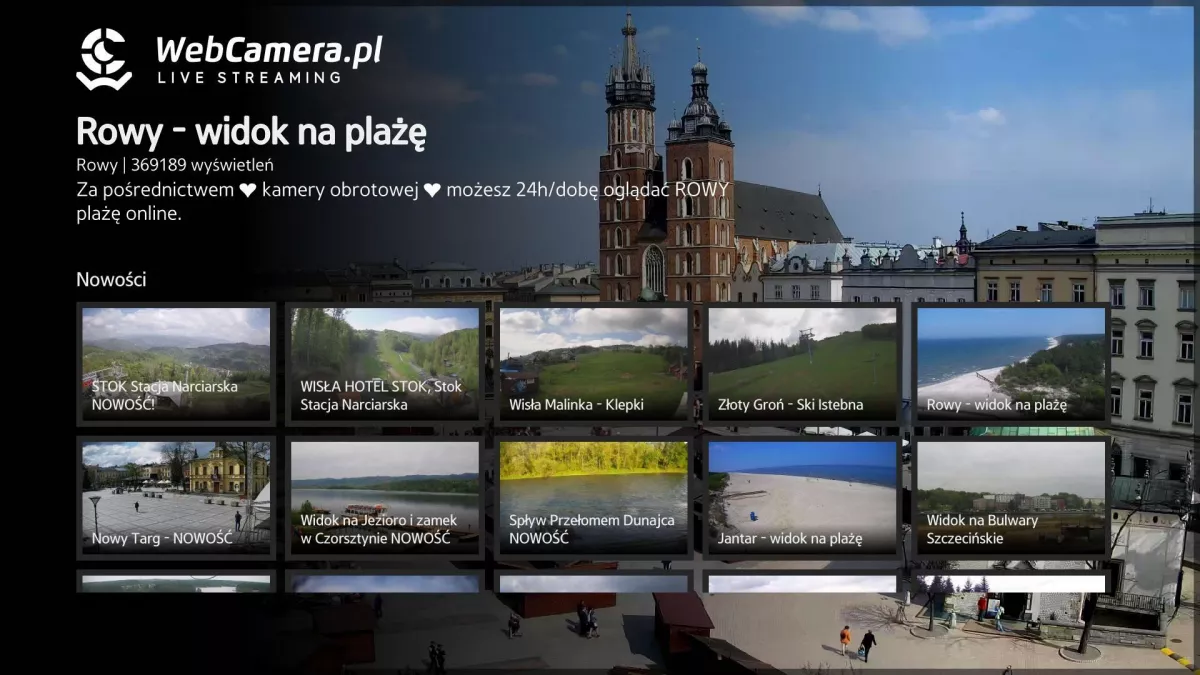 - Jako lider w transmisji Live w Polsce dajemy Ci ekskluzywny dostęp do naszych ujęć bez reklam. Wykorzystaj okazje, aby oglądać najlepsze widoki z najciekawszych turystycznie miejsc w Polsce.